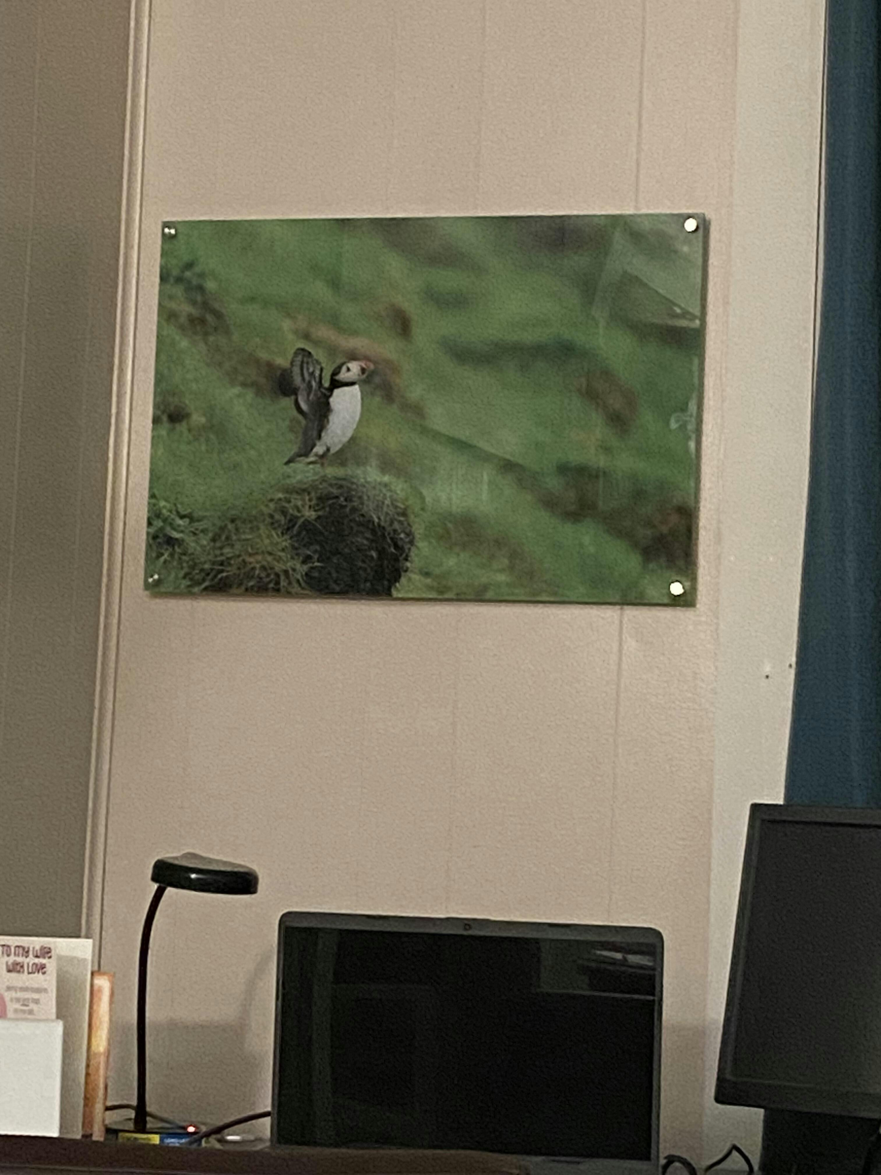 Most of the year Puffins spend their time out at sea floating on the waves. They only return to land for a few summer months for breeding. Vestmannaeyjaber Island, also known as Westman Islands, just off the southern coast of Iceland is home to the larges breeding Puffin colony. Experience a slice of Iceland's verdant landscape, adorned with a rare and magnificent Puffin captured mid-flap in this photograph. Acrylic prints offer vibrant, high-resolution images with a glossy, glass-like finish and stunning depth. Durable and scratch-resistant, they’re ideal for luxury home decor, corporate offices, galleries, and modern art displays: